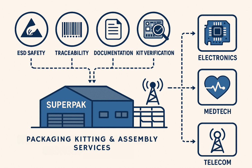 Outsourcing kitting and assembly services helps electronics and medical manufacturers in Singapore overcome high labour costs, strict compliance demands, and limited space. This guide explains how local partners like SuperPak improve accuracy, scalability, and quality while freeing up in-house resources to focus on core production and innovation.