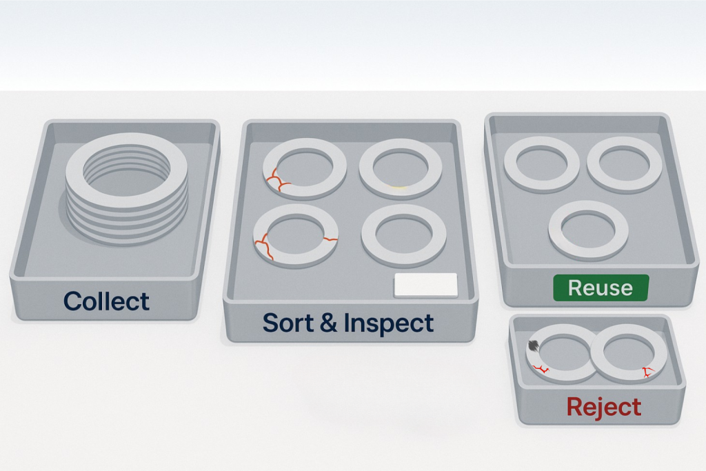 A simple three way triage is enough for many programmes. Rings go into a reuse batch when they pass basic visual checks and have known return history. Rings go into quarantine when history is unclear or residue risk is higher. Rings go into the rejection pile when damage or deformation makes safe reuse unrealistic.