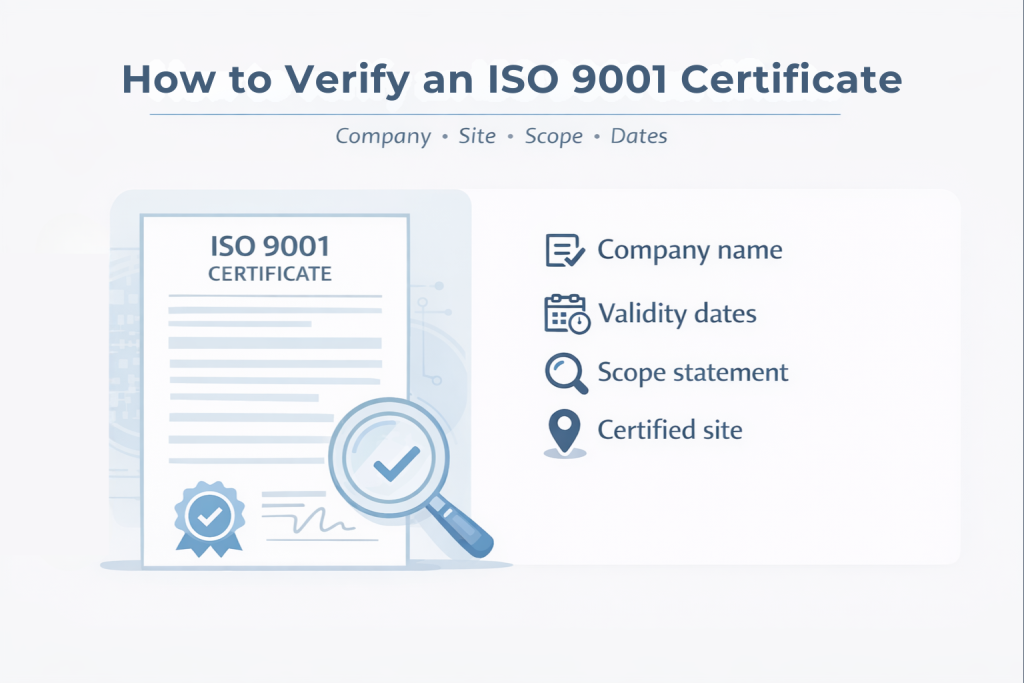You do not need a full audit to confirm the basics. You just need to check that the certificate applies to the company, the site, and the work you are buying. ISO 9001 is a quality management system standard, so your focus should be whether the supplier’s QMS actually covers the packaging process that will support your order.